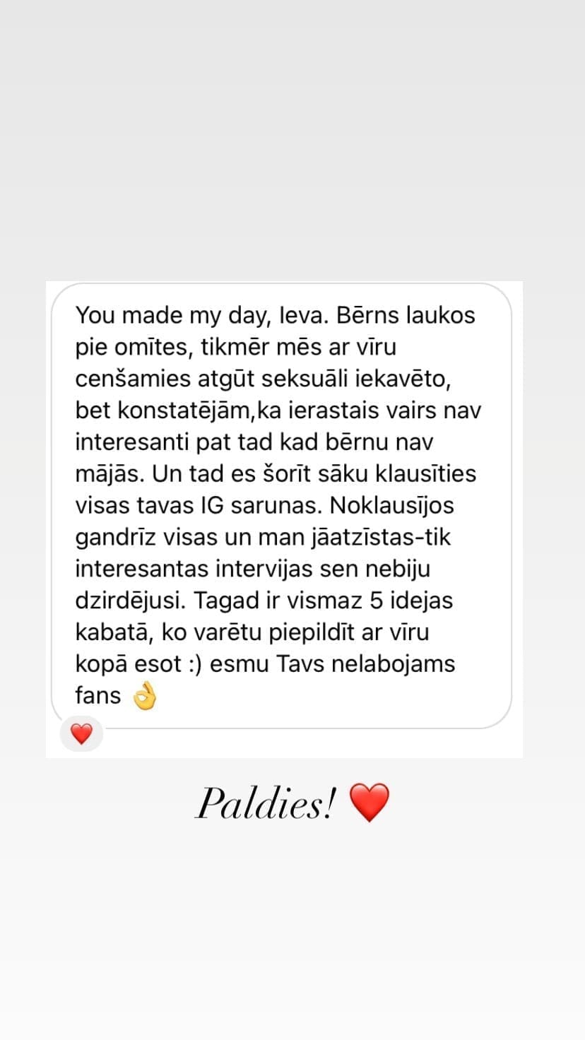 Lai viņas attiecībās nevis vienkārši eksistē, bet arī uzplaukst tajās. Un lai viņas saprot: bauda nav bonuss. Tā ir Tavas labsajūtas neatņemama sastāvdaļa.